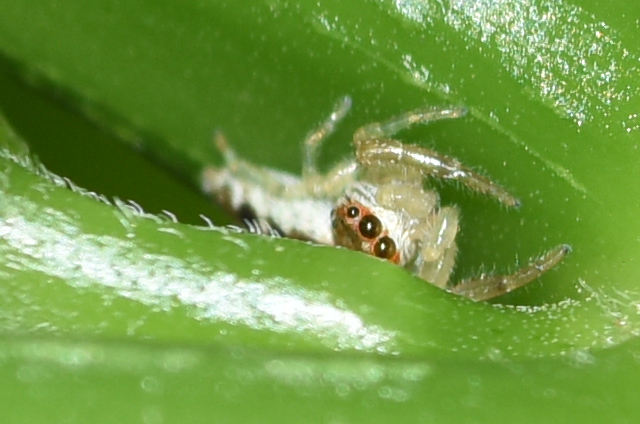 Had a brief encounter with a favorite of mine… a gray wall jumping spider. I love these guys! They are so much fun, so feisty! This is a female pictured here below. I also have a few pictures of a spiny backed orb weaver.